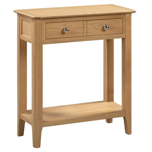Enhance your hallway or living area with the Cotswold Wooden Console Table with 1 Drawer, available at CozyFurnitureDirect. Crafted from solid oak and oak veneers, this versatile console table combines durability with classic style. Featuring a handy drawer with a charming round silver knob and a spacious lower shelf, it’s perfect for keeping everyday essentials like keys, gloves, or decorative displays organised. With its soft edges and timeless natural oak finish, the Cotswold console table is a stylish yet practical addition to traditional UK interiors.