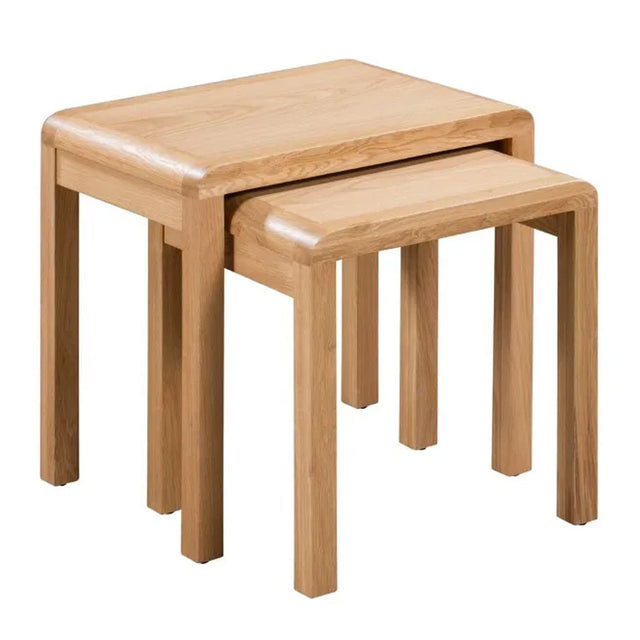 Add versatile style and functionality to your home with the Curve Wooden Nest of 2 Tables, available at CozyFurnitureDirect. Expertly crafted from solid oak and oak veneers, this elegant design combines clean lines with the collection’s signature curved edging, creating a contemporary look with a subtle retro influence. Perfect for living rooms or dining areas, this nesting set provides two practical tables that can be used individually for drinks, snacks, or decor, and neatly tucked away when not needed. Ideal for modern UK homes, the Curve nest of tables is both a stylish and space-saving solution.