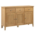 Add timeless storage and elegance to your home with the Cotswold Wooden Sideboard with 3 Doors and 3 Drawers, available at CozyFurnitureDirect. Beautifully crafted from solid oak and oak veneers, this sideboard offers exceptional durability while showcasing the natural warmth of the wood. With three spacious drawers and three cupboard sections, it provides ample room to neatly organise your dining essentials, tableware, or household items. Finished with soft edges and charming round silver knobs, the Cotswold sideboard is a practical yet stylish addition to traditional UK interiors, seamlessly blending functionality with classic design.